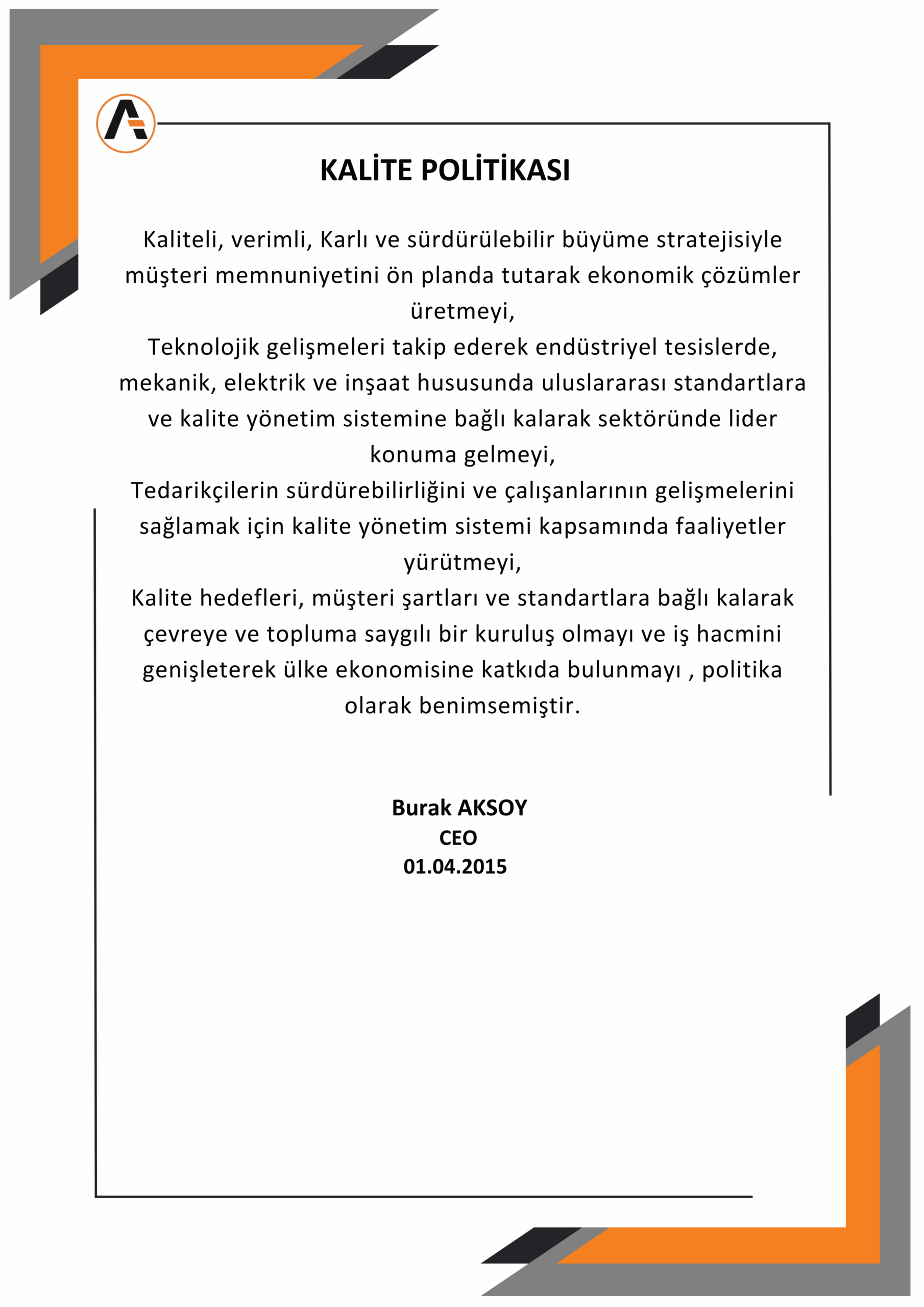 Kaliteli, verimli ve sürdürülebilir büyüme stratejisiyle müşteri memnuniyetini ön planda tutarak ekonomik çözümler üretiyoruz. Paydaşlarımızla açık ve dürüst iletişim kurarak, beklentilerini anlamak ve gereksinimlerini karşılamak için çaba gösteriyoruz. Alanında uzman ve deneyimli bir ekip olarak, mühendislik çözümlerimizi en yüksek kalitede sunmayı amaçlıyoruz.